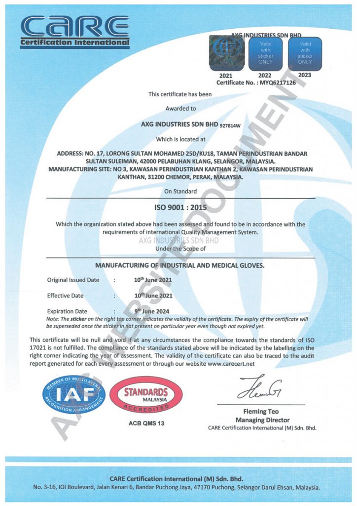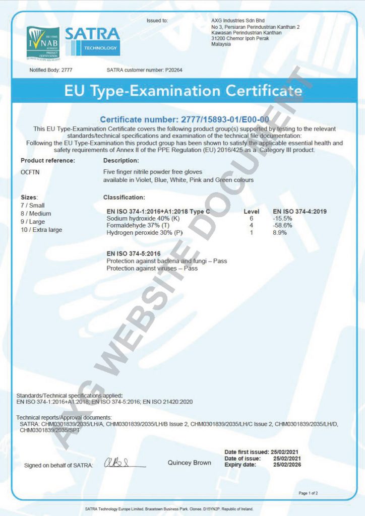 CERTIFICATES, REPORTS & MEMBERSHIPS - Welcome to AX Gloves